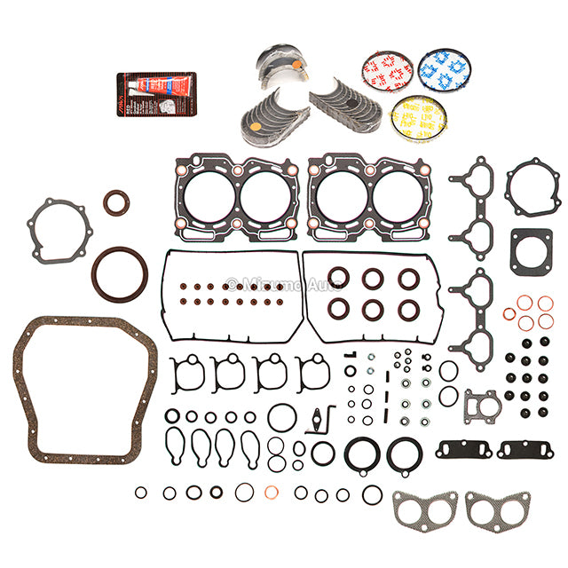 Full Gasket Set Bearings Rings Fit 97-99 Subaru Forester Impreza 2.5 DOHC EJ25. Revitalize your engine with our Complete Engine Re-Ring Kit, a comprehensive solution for piston and ring replacement that ensures peak performance and longevity. Upgrade to our re-ring kit for a complete overhaul, replacing both pistons and rings with high-quality materials crafted for precision and durability. This kit is designed to renew your engine's performance and restore it to optimal condition. Crafted with precision engineering, our pistons and rings contribute to improved compression, leading to increased power and responsiveness. The result is an engine that operates with enhanced efficiency and performance. Invest in the longevity and performance of your engine with our Complete Engine Re-Ring Kit. Upgrade today for a revitalized and responsive driving experience.