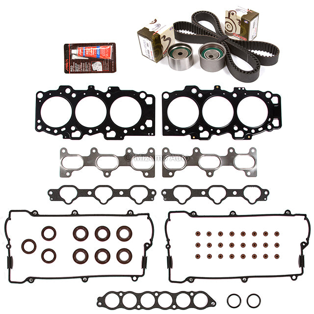 Head Gasket Set Timing Belt Kit Fit 01-03 Hyundai Santa Fe Kia 2.7 DOHC G6BA. Revitalize your engine's performance with our Essential Engine Maintenance Bundle - a carefully curated package featuring a top-tier Head Gasket Set and a precision-engineered Timing Belt Kit. This comprehensive bundle is designed for peak performance and long-term reliability. The head gasket set ensures superior sealing, preventing leaks and maintaining optimal compression levels, essential for a healthy engine. Paired with our precision timing belt kit, your engine will benefit from accurate synchronization, promoting enhanced overall performance. Crafted from high-quality materials, both the head gasket set and timing belt kit are built for durability and long-lasting reliability. Installation is a breeze with our user-friendly design, saving you time and effort in the maintenance process. Invest in the longevity and performance of your engine with our Essential Engine Maintenance Bundle – the complete solution for a reliable and efficient powertrain.