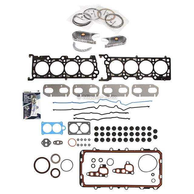 Full Gasket Set Bearings Rings Fit 96-98 Lincoln Mark VIII Ford Mustang 4.6L. Revitalize your engine with our Complete Engine Re-Ring Kit, a comprehensive solution for piston and ring replacement that ensures peak performance and longevity. Upgrade to our re-ring kit for a complete overhaul, replacing both pistons and rings with high-quality materials crafted for precision and durability. This kit is designed to renew your engine's performance and restore it to optimal condition. Crafted with precision engineering, our pistons and rings contribute to improved compression, leading to increased power and responsiveness. The result is an engine that operates with enhanced efficiency and performance. Invest in the longevity and performance of your engine with our Complete Engine Re-Ring Kit. Upgrade today for a revitalized and responsive driving experience.